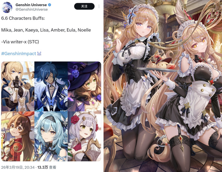 另外即是干系后续6.6-6.7版块的更多音信亦然平直被公布了出来,这两个版块值得见谅的信息照旧超等多的。当先6.6除了会招待尼可洛恩两位新五星变装以外,魔导第二批加强也将安妥实装,名单区分是琴,优菈,米卡,丽莎,凯亚安柏和诺艾尔。